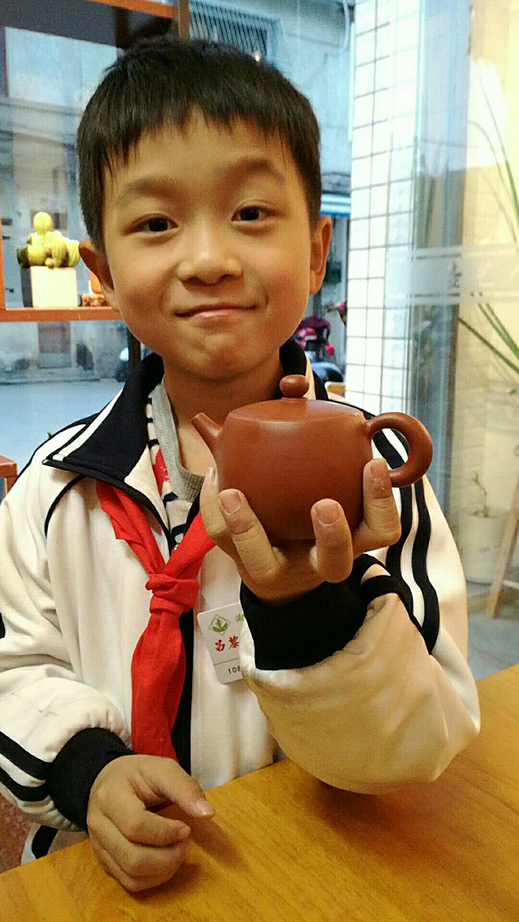 听他父亲讲起,三岁时的他便开始对父母的手头上的紫砂感兴趣。也许这就是耳濡目染的最好体现,在这样一个环境的熏陶下,他慢慢对制壶这项技艺形成了自己的见解,几年过去,刚上小学的他便拿出了一份由他所设计的“智能壶”设计图。